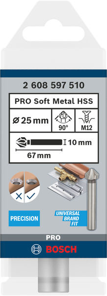 .Bosch záhlubník PRO Soft Metal HSS, 25 × 67 mm, M12