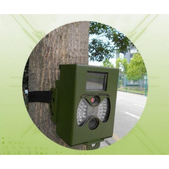 Robustná kovová skrinka na umiestnenie Braun ScoutingCam Black 300 v teréne s možnosťou uzamknutia. Maskovacie sfarbenie, pevné uchytenie pomocou káblového zámku.
