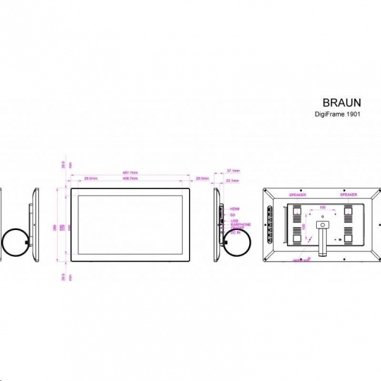 .Braun LCD fotorám DigiFRAME 1901 (18,5", 1366x768px, 16:9 IPS, FullHD, AV/HDMI, 8GB)