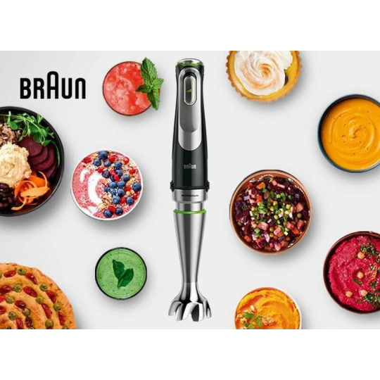 Tyčový mixér Braun MQ 9135BK MultiQuick 9 dokáže vďaka technológiám ActiveBlade a PowerBell vytvoriť najjemnejšie kulinárske výtvory. So 3 režimami rýchlosti iMode a technológiou proti frkaniu surovín SplashControl zvládne v kuchyni takmer všetko.