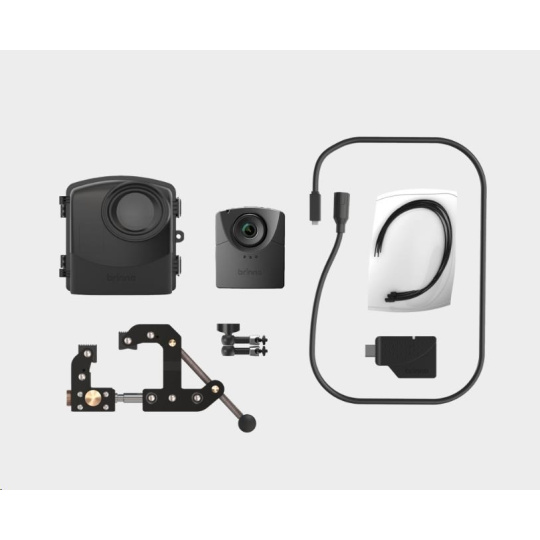 Sada stavebnej kamery Brinno BCC2000 Plus obsahuje časosbernú kameru TLC2000, nástavec pre notebook alebo tablet, svorkový držiak a vodotesné puzdro a batériu.
