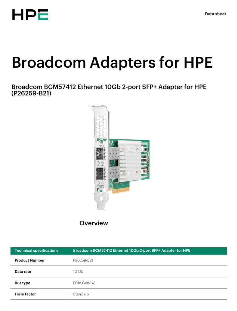 Broadcom BCM57412 Ethernet 10Gb 2-port SFP+ Adapter for HPE (P26259-B21)