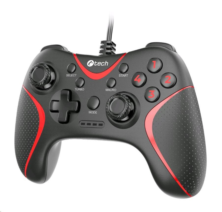 Gamepad C-TECH Theon pro PC/PS3, 2 programovateľné makro tlačidlá, 2x analóg, X-input, vibračný, 1,8m kábel, USB