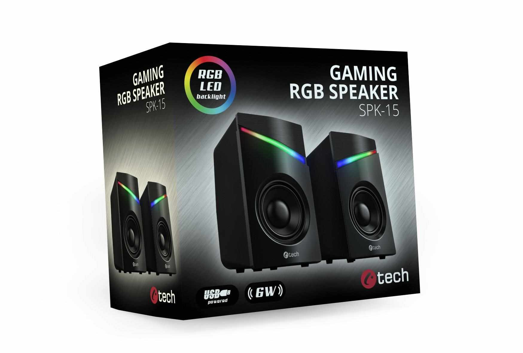 .C-TECH reproduktory SPK-15, 2.0, RGB, černá