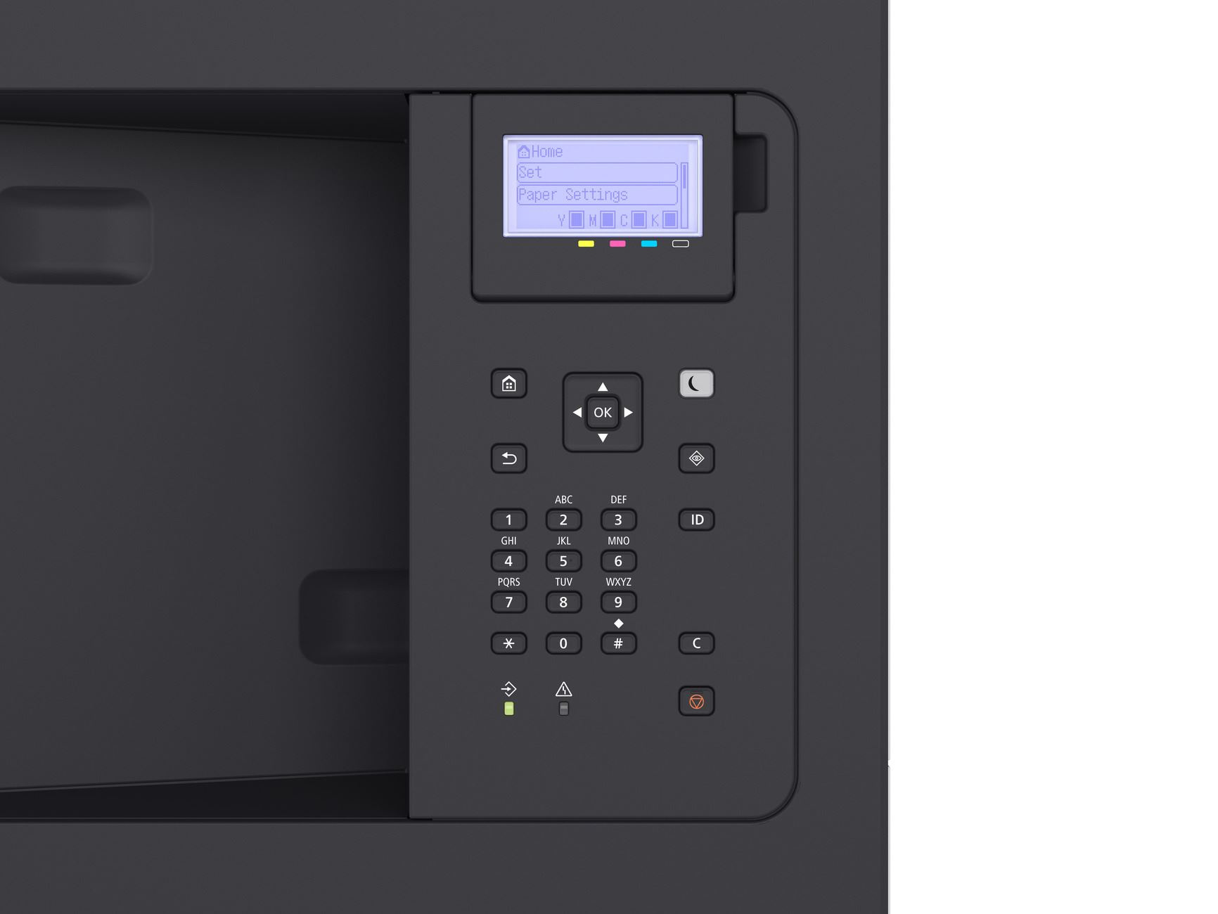 | Ovládací panel | LCD displej s 5 riadkami, 5 LED indikátorov (Online, Ready, Message, Job a Energy saver), tlačidlá, numerická klávesnica s 10 klávesmi |