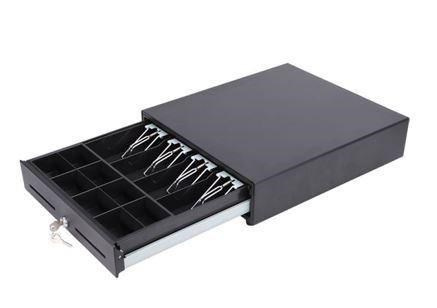 - Kovová pokladničná zásuvka s guľôčkovým ložiskom pre veľké zaťaženie - Ochranná konštrukcia - Vrátane priehradky na bankovky: nastaviteľné priečky až pre 4 priehradky (s 4 kovovými sponami) - Vrátane priehradky na mince: dvojradová s nastaviteľnými priečkami pre 8 priehradiek - Otvor na médiá s predným prístupom pre šek, potvrdenie o kreditnej karte alebo akýkoľvek papier - 3-polohový zámok na kľúč - 6V, 12V, 24V pre rozhranie tlačiarne účteniek RJ11 / RJ12
