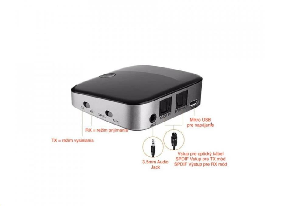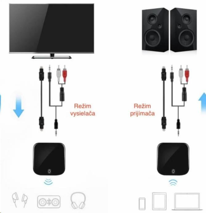 - Adaptér ako prijímač aj vysielač Bluetooth 4.1