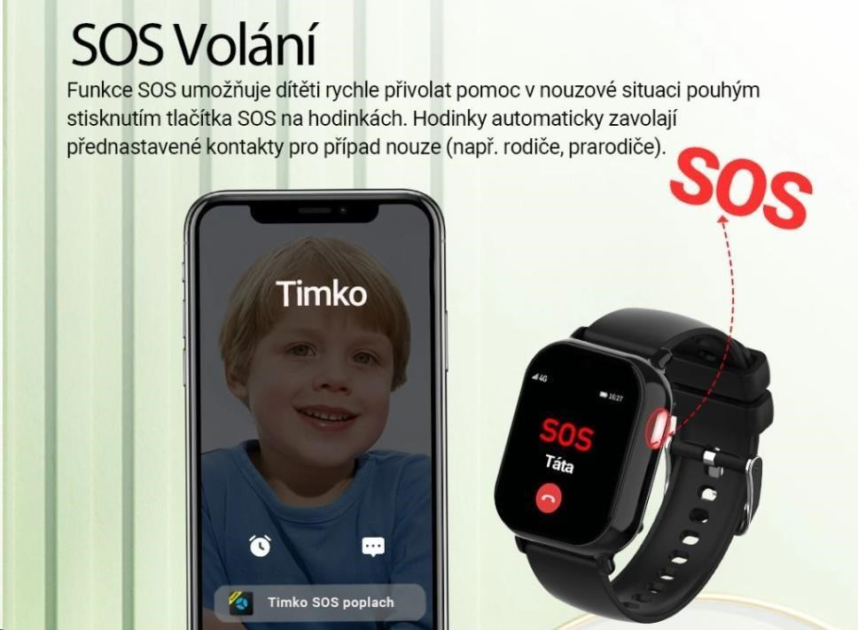 Tlačidlo SOS na detských hodinkách predstavuje rýchly a spoľahlivý spôsob, ako dieťa môže privolať pomoc v kritických situáciách. Stačí ho niekoľko sekúnd podržať a hodinky automaticky :
