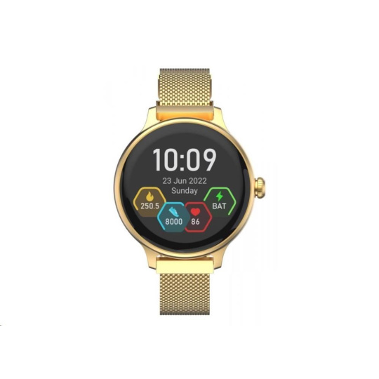 Luxusné fitness hodinky CARNEO HERO mini HR+ s Milánskym, kovovým remienkom s farebným Super HD AMOLED displejom. Monitorujú vašu dennú aktivitu, výšku stresu a je možné ich spárovať s mobilným telefónom, vďaka čomu Vás upozorní na prichádzajúci hovor či SMS. Ich dokonalé, minimalistické kovové telo s jednoduchými krivkami je tak návykové, že ich nebudete chcieť po prvom nosení z ruky sundat. Hodinky Vám umožňujú využiť telefonický hovor cez zabudovaný mikrofón a reproduktor, ak budete v dosahu spárovaného telefónu (vzdialenosť až 10 metrov).