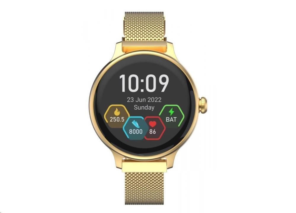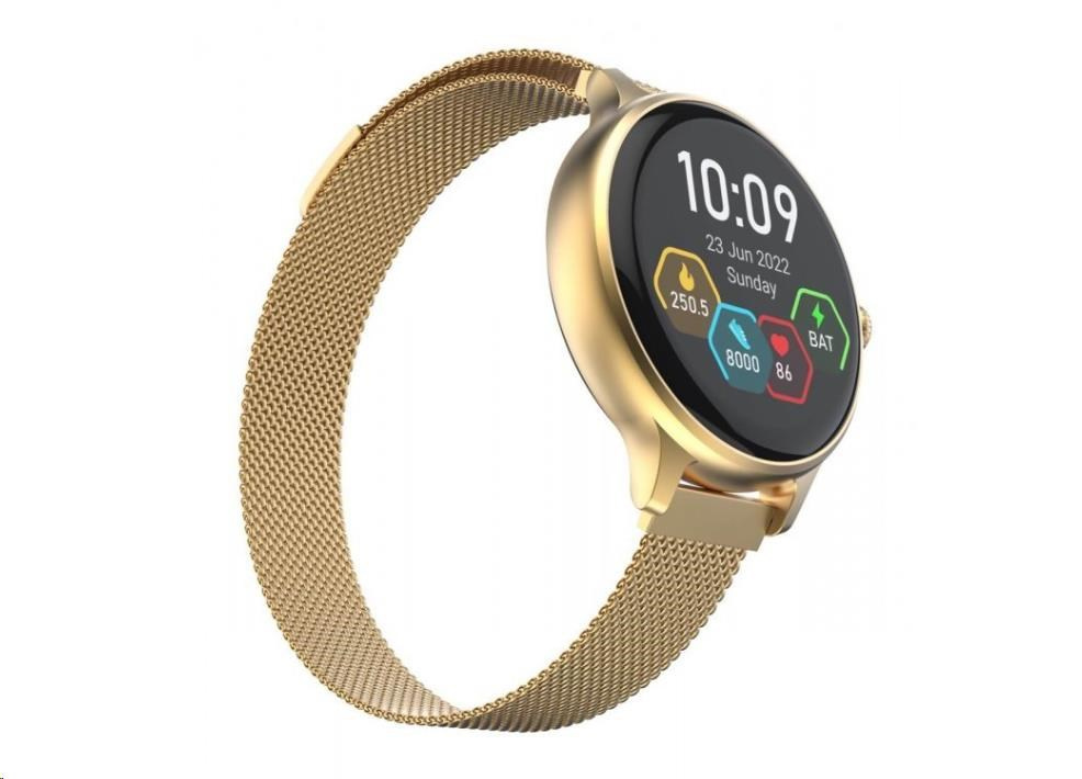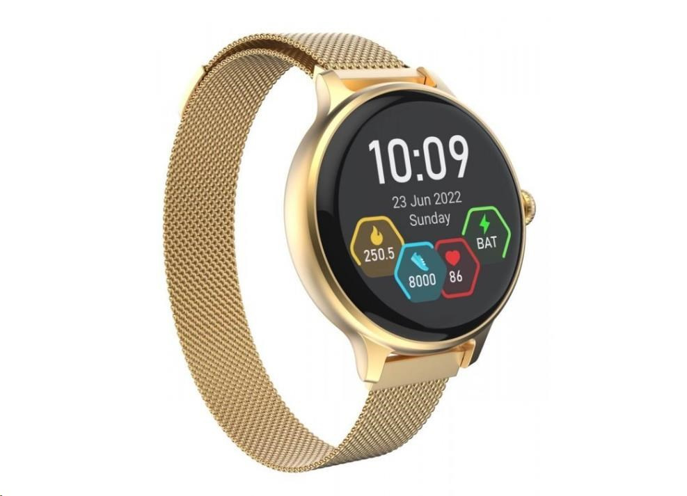 Luxusné fitness hodinky CARNEO HERO mini HR+ s Milánskym, kovovým remienkom s farebným Super HD AMOLED displejom. Monitorujú vašu dennú aktivitu, výšku stresu a je možné ich spárovať s mobilným telefónom, vďaka čomu Vás upozorní na prichádzajúci hovor či SMS. Ich dokonalé, minimalistické kovové telo s jednoduchými krivkami je tak návykové, že ich nebudete chcieť po prvom nosení z ruky sundat. Hodinky Vám umožňujú využiť telefonický hovor cez zabudovaný mikrofón a reproduktor, ak budete v dosahu spárovaného telefónu (vzdialenosť až 10 metrov).