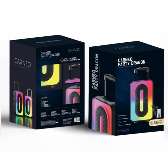 Maximálny výkon P.M.P.O. 600 W jednoducho rozohrá aj väčšiu domácu párty alebo živšie vonkajšie posedenie. Vylepšená kvalita zvuku a našlapaný výkon vás vtiahnu do sveta hudby, ktorý nebude chcieť opustiť. S Carneo PartyDragon sa môžete spoľahnúť, že vždy dodá hutný a čistý zvuk. Vysoce kvalitné reproduktory Vám doručia do uší nepremožiteľne kvalitný zvuk s vysokými výškami aj basy.