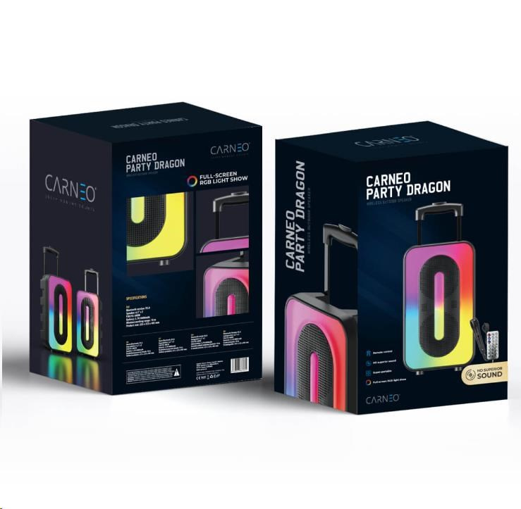 Maximálny výkon P.M.P.O. 600 W jednoducho rozohrá aj väčšiu domácu párty alebo živšie vonkajšie posedenie. Vylepšená kvalita zvuku a našlapaný výkon vás vtiahnu do sveta hudby, ktorý nebude chcieť opustiť. S Carneo PartyDragon sa môžete spoľahnúť, že vždy dodá hutný a čistý zvuk. Vysoce kvalitné reproduktory Vám doručia do uší nepremožiteľne kvalitný zvuk s vysokými výškami aj basy.