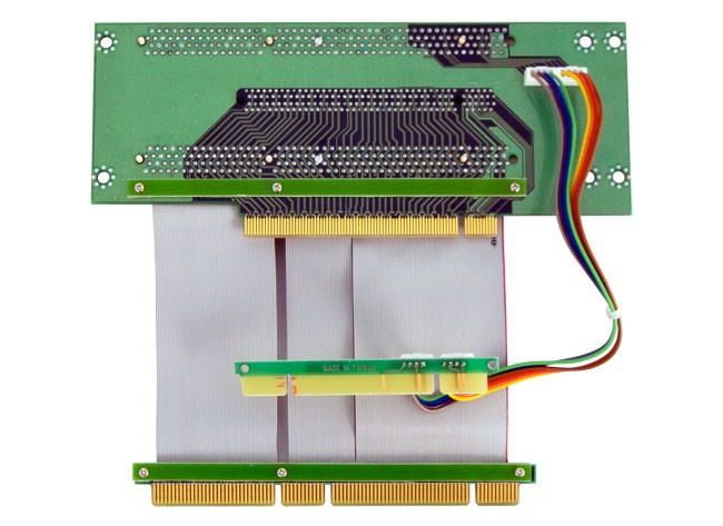 | Karta Riser má jeden slot PCI-E 16x a dva 3,3V 64-bitové sloty PCI-X, predlžovací kábel PCI-X, signálny kábel PCI