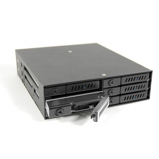 CMR-625 - Vysoko inovatívna základná doska CMR-625 stanovuje nový štandard tým, že poskytuje možnosť montáže 6x 2,5" HDD/SSD//SATA I/II/III pomocou 1x 5,25" externého slotu. Je kompatibilný so všetkými 2,5" HDD/SSD (výška: 7 ~ 9,5 mm), napája sa prostredníctvom pripojenia SATA a ponúka LED diódy na indikáciu prístupu k HDD a napájania, pričom zásobníky sú odnímateľné na jednoduchú inštaláciu. Puzdro je 100 % kovové a uzamykateľné, čo zaručuje maximálnu bezpečnosť. Všetky nainštalované disky sú vymeniteľné za prevádzky, vďaka čomu je vhodný pre rôzne aplikácie.