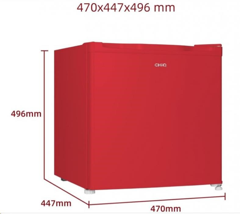 CHiQ CSD46D4RE minibar, 46 litrů, 2 přihrádky, 0 °C až +10 °C, 39 dB, červený