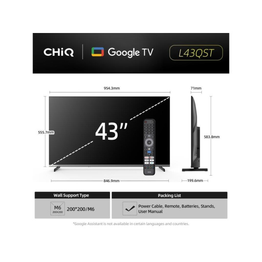 CHiQ L43QST TV 43", FHD, QLED, ultratenká, Android14, Dolby Audio, Frameless