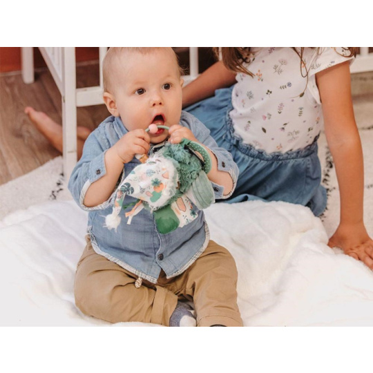 Originálne chrastítko v podobe roztomilého lenochoda, so množstvom prvkov stimulujúcich detské zmysly a podporujúcich rozvoj jemnej motoriky a koordinácie očí a rúk, vykúzli úsmev na tvári vašej dievčatka alebo chlapca. Úžasne hebký lenochod (chrastítko) si pre bábätko pripravil rôzne materiály, rolničku, korálky aj kousadlo, ktoré prinášajú úľavu pri pretrhávaní prvých zúbkov.