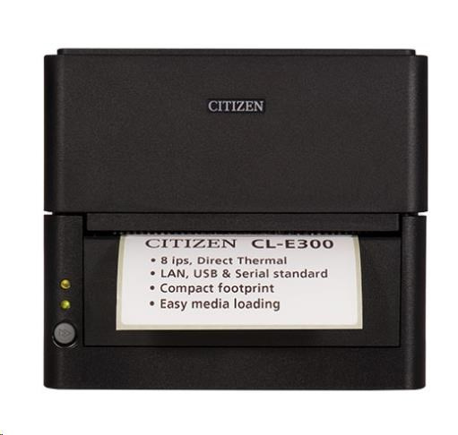 Malá veľkosť novej tlačiarne Citizen CL-E300 z nej robí ideálnu tlačiareň do priestorovo obmedzených prostredí, ale napriek tomu umožňuje tlačiť štítky so šírkou až 104 mm, ktoré možno tlačiť na 127 mm papier. Vďaka štandardnej sieti Ethernet LAN a rozhraniam USB a sériovému rozhraniu je CL-E300 ideálny pre všetky aplikácie. Integrovaný webový a konfiguračný systém LinkServer™ spoločnosti Citizen umožňuje úplné ovládanie tlačiarne. CL-E300 má verzie s rozlíšením 203 dpi a 300 dpi, ako aj možnosti rezania a lúpania, čo umožňuje použitie v akejkoľvek aplikácii priamej termálnej tlače s nízkym až stredným objemom.