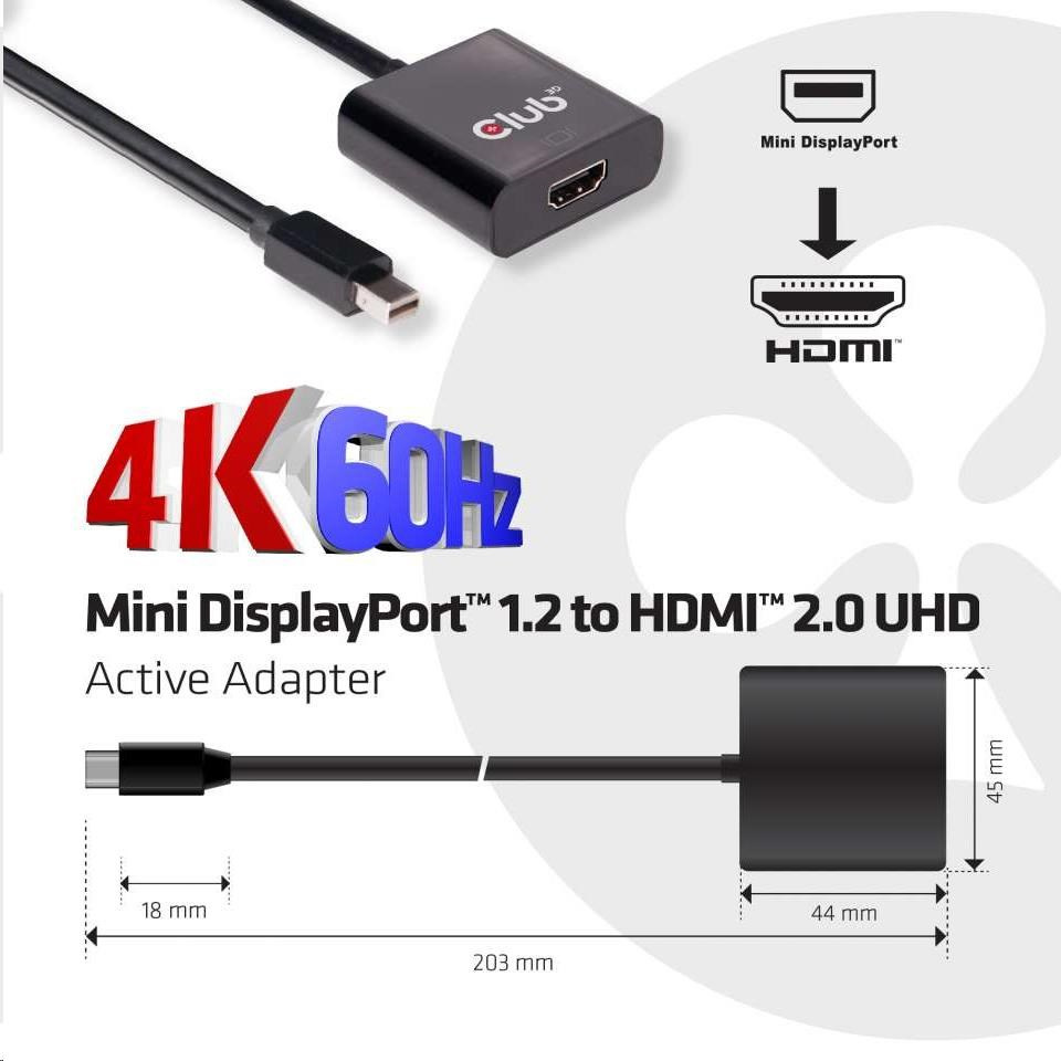 .Club3D Adaptér aktívny mini DisplayPort 1.2 na HDMI 2.0 4K60Hz UHD, (M/F), 20 cm