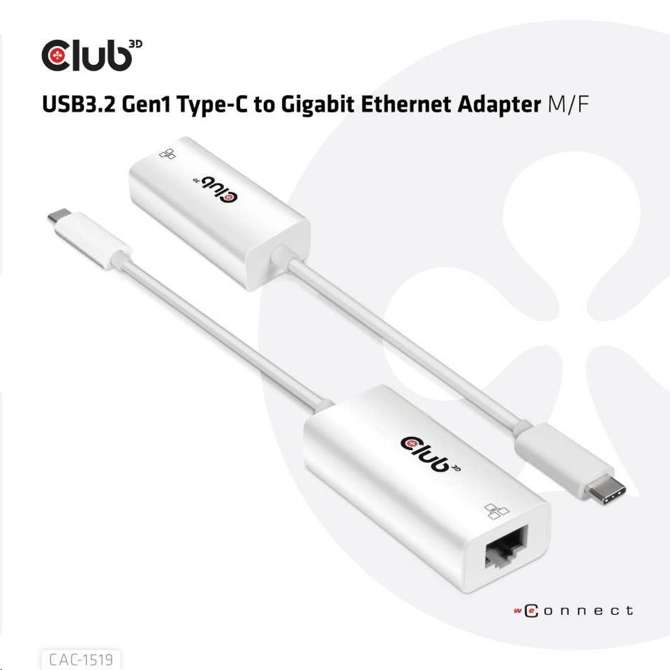 Aktívny USB adaptér Club3D 3.2 Typ C na LAN (Gigabit Ethernet - 1Gb), 20 cm
