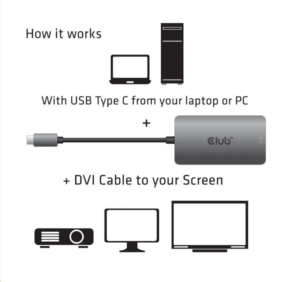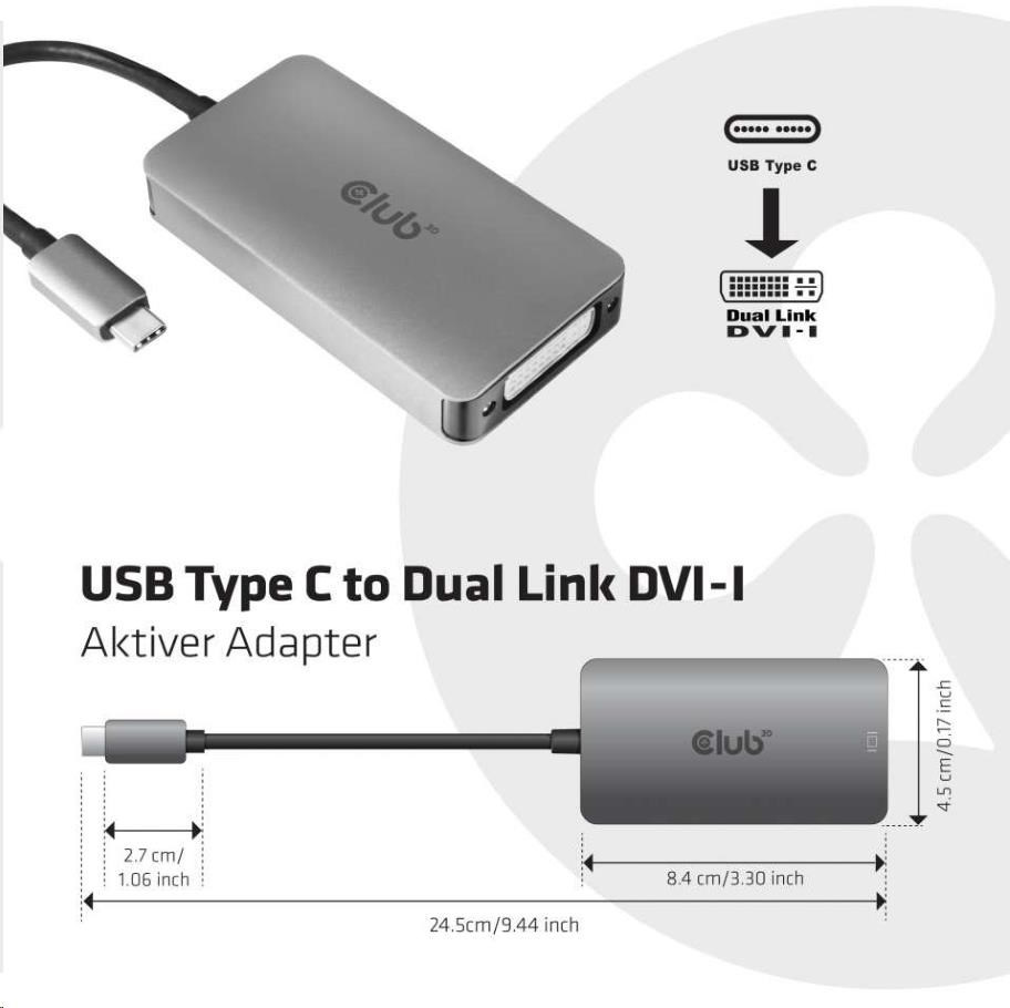 .Club3D Active USB Type C to DVI-I Dual Link Adapter, HDCP on