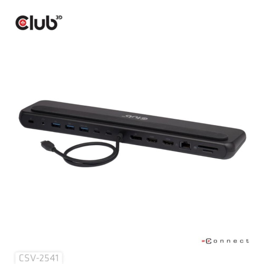 CSV-2541 je dokovacia stanica USB Type-C 10Gb/s 12 v 1 s trojitým displejom, 2x HDMI, 1x DisplayPort, 1x dátový port USB Type-C, 3x USB Type-A, RJ45, čítačka kariet, 3,5mm audio port a nabíjací port USB Type-C, ktorá predstavuje ideálne riešenie pre rozšírenie hostiteľského počítača USB Type-C alebo Thunderbolt, najmä pre hostiteľov s jediným portom USB Type-C. Vďaka konštrukcii s dolným držiakom môže byť stabilným stojanom pre vaše notebooky. Dodáva sa so 100W nabíjačkou a kábla, ktorý je súčasťou balenia.