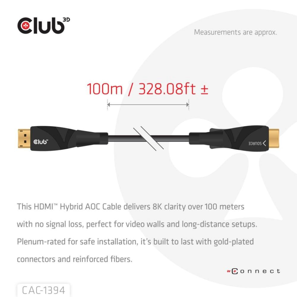 .Club3D Kabel aktivní hybridní optický HDMI 2.1 8K60Hz/4K120Hz, (M/M), 100m