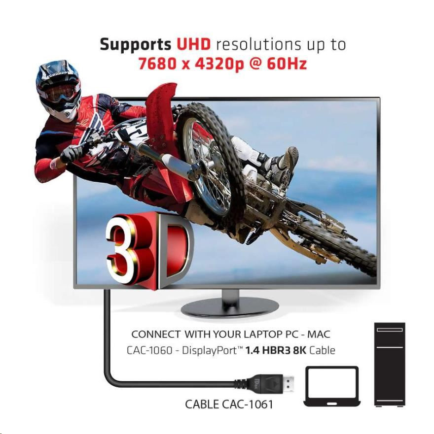 - Club 3D DisplayPort™ 1.4 HBR3 8K kábel.