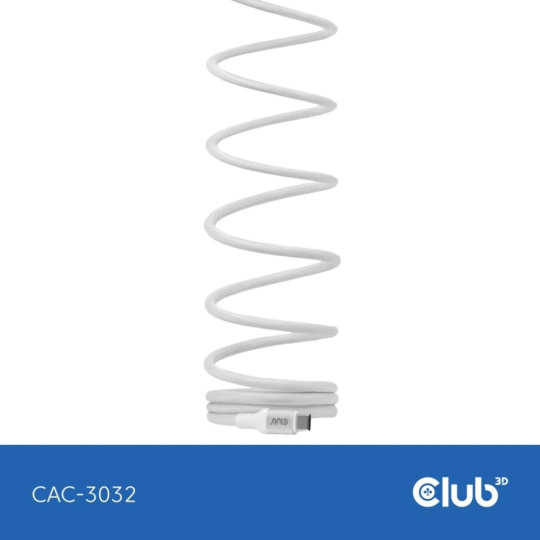 .Club3D Kabel magnetický USB-C, 240W PD3.1, 480 Mbps, 2m, bílá
