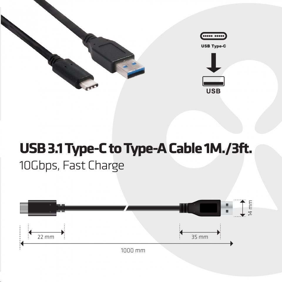 .Kábel USB Club3D 3.1 Type-C na USB 3.1 Typ A, 10Gbps Power Delivery 60W (M/M), 1m