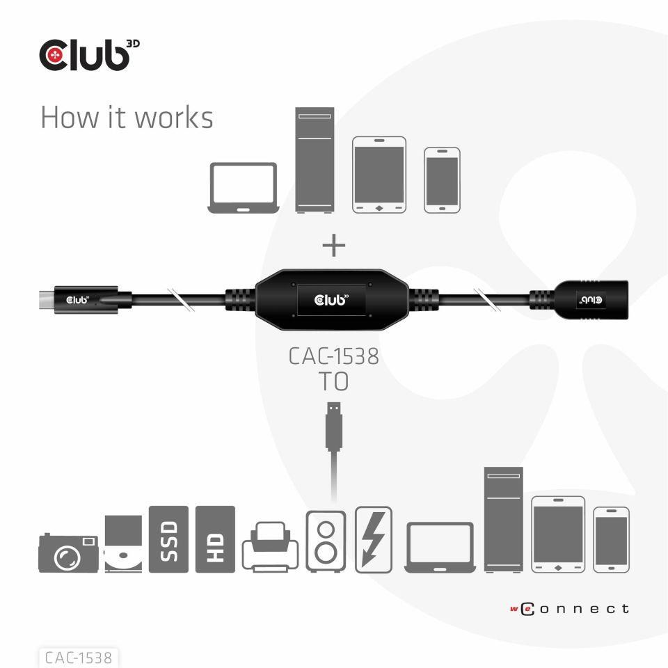 Club3D Kabel USB-C na USB-A, Aktivní adaptér/kabel, 5 Gbps (M/F), 10m