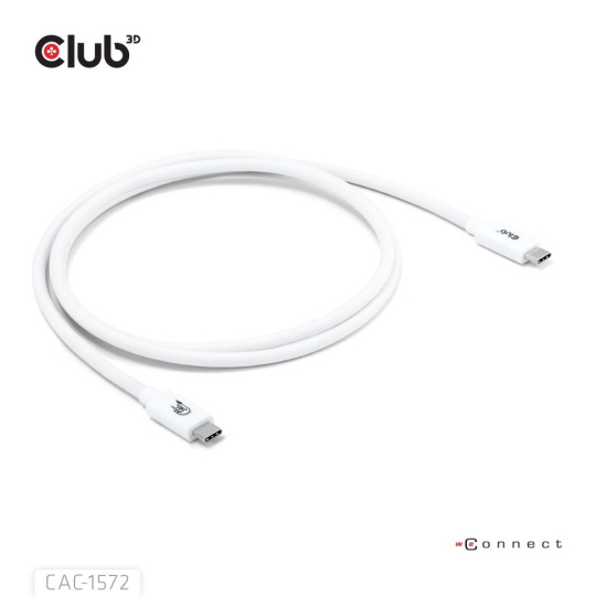 .Club3D Kabel USB4 Typ-C, 80Gbps, Certifikovaný kabel, 4K540Hz, 8K240Hz, 16K60Hz, PD 240W, 1.2m, bílá