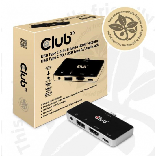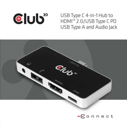 .Club3D hub pro mobilní telefony USB Type C 4-in-1 Hub to HDMI™ 4K60Hz USB Type C PD / USB Type A / Audio jack