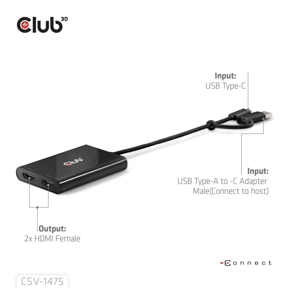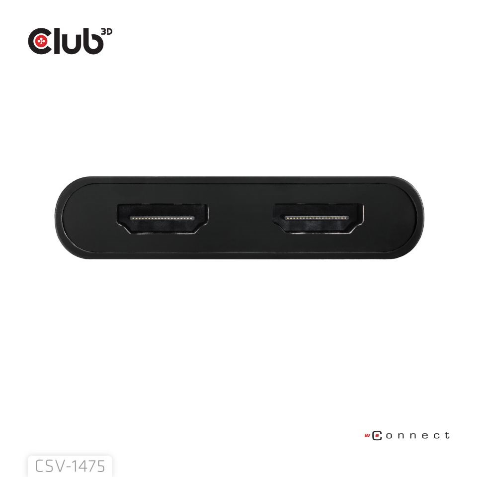 Club 3D CSV-1475 USB-C/A) na duálny HDMI (4K60Hz) Video Splitter s DisplayLink® poskytuje najpokročilejšie a najefektívnejšie riešenie. Podporuje max. jeden 4K60Hz alebo duálny 4K60Hz s podporou Extended Desktop.