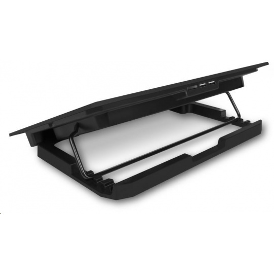 Chladiaca podložka pod notebook CONNECT IT "FrostBreeze" CCP-1910-BK s dvoma ventilátormi s modrým LED podsvietením, celokovovou chladiacou mriežkou a štvorpolohovým nastavením výšky. Kompatibilný s notebookmi do veľkosti 15,6".
