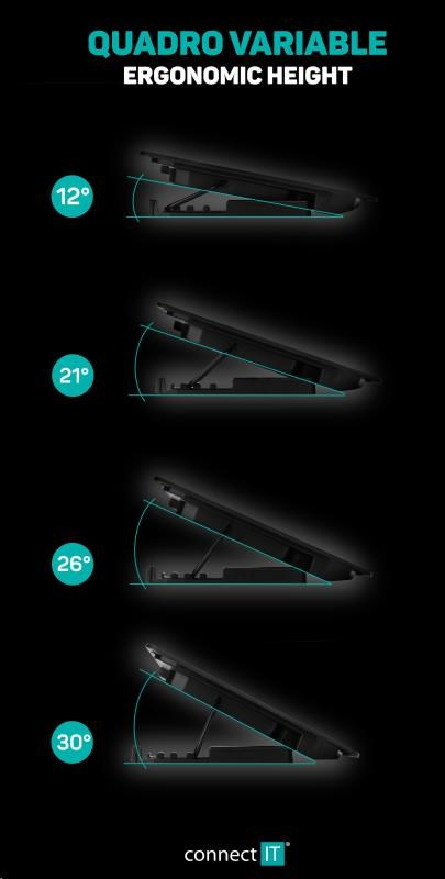 - Nastaviteľná výška v 4 rôznych stupňoch (12°, 21°, 26° a 30°)