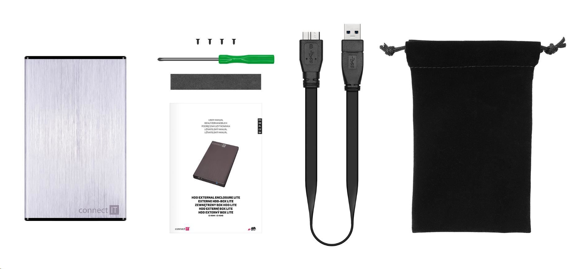 Externý box CONNECT IT LITE pre HDD 2,5" SATA, USB 3.0 striebra