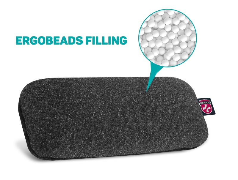 Podperka zápästia pred myšou plnená guľôčkami ErgoBeads, vďaka ktorým sa podperka vytvaruje a prispôsobí každému zápästiu a zabezpečí tak celodenný komfort pri práci na PC.