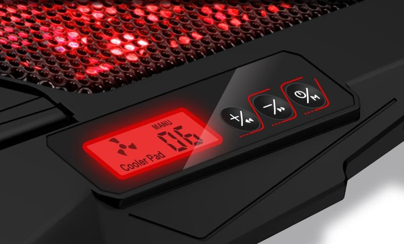 Chladiaca podložka pod notebook so štyrmi šesťrýchlostnými ventilátormi, digitálnym displejom, 4-stupňovým nastavením výšky a dvoma portmi USB. Podložka zabezpečuje odvod tepla z notebooku a jeho vetracích otvorov, ako aj priame chladenie krytu notebooku prostredníctvom cirkulácie chladného vzduchu, čím zlepšuje celkový výkon notebooku. Je plne kompatibilný s notebookmi do veľkosti 15,6" a vďaka kompaktným rozmerom je ideálny na prácu doma a v kancelárii, ako aj na cestovanie a časté prenášanie. Mimoriadne tichá prevádzka 4 ventilátorov vás nebude rušiť ani pri najnáročnejšej práci vyžadujúcej maximálnu koncentráciu. Nastaviteľná výška v 4 rôznych úrovniach zaručuje maximálne pohodlie aj počas dlhšej práce alebo hrania hier.