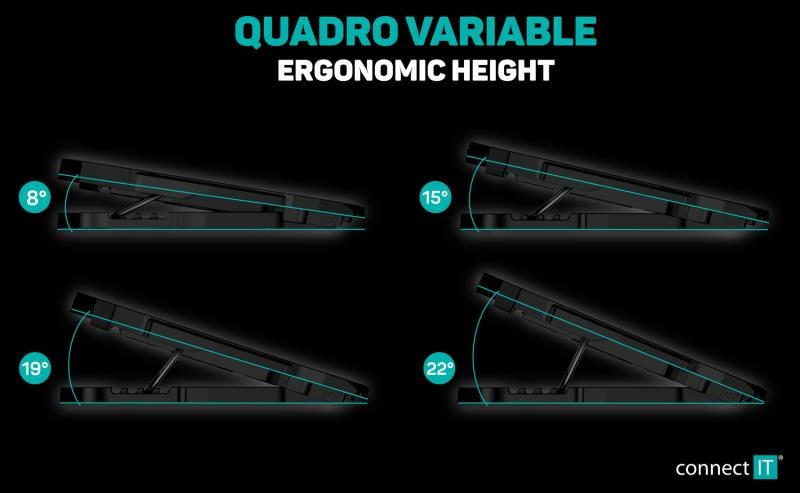 - Nastaviteľná výška v 4 rôznych stupňoch (8°, 15°, 19° a 22°)