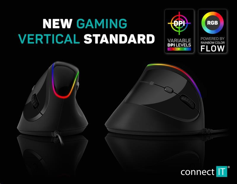 CONNECT IT GAME FOR HEALTH ergonomická vertikálna myš, drôtová, čierna