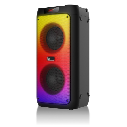 Bezdrôtový reproduktor Hyperbass BEAT+ vás prekvapí nielen svojím zvukom, ale aj kvalitným spracovaním. Celý predný panel disponuje farebným LED podsvietením s možnosťou prepínania niekoľkých svetelných módov. Obsahuje tiež informačný LED displej, možnosť ovládania na diaľkovom ovládači a pripojenia externého mikrofónu (diaľkový ovládač a mikrofón sú súčasťou dodávky).