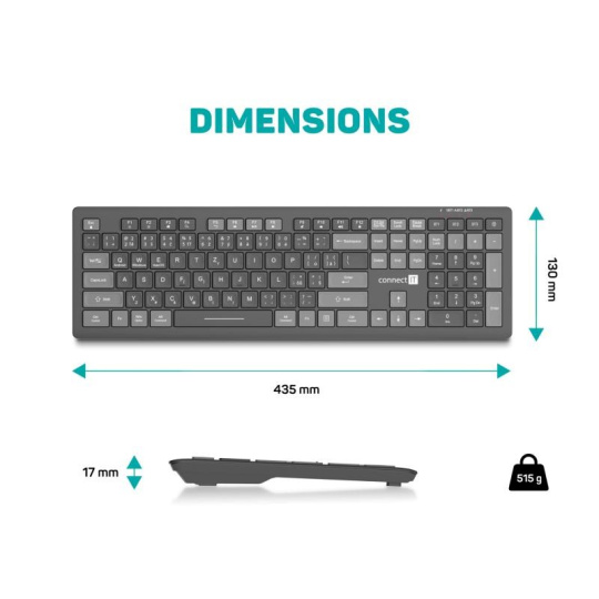 CONNECT IT kancelářská klávesnice MultiDevice, Bezdrátová, CZ + SK, šedá