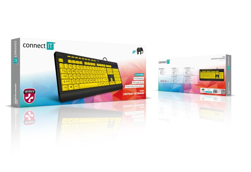 .CONNECT IT Klávesnice FOR HEALTH CONTRAST, s velkým fontem, membránová, drátová, CZ/SK, Žluto-Černá