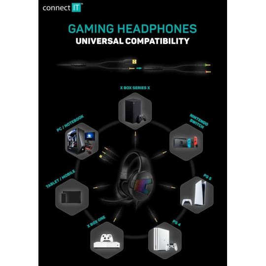 .CONNECT IT NEO herní sluchátka s mikrofonem, 1xJack+USB, černá