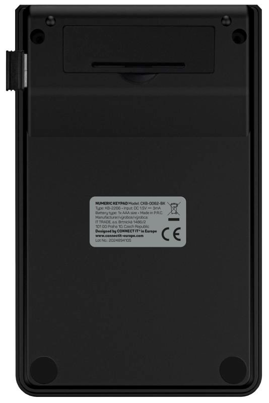 CONNECT IT NumCalc bezdrátová numerická klávesnice, 1x AAA baterie, černá