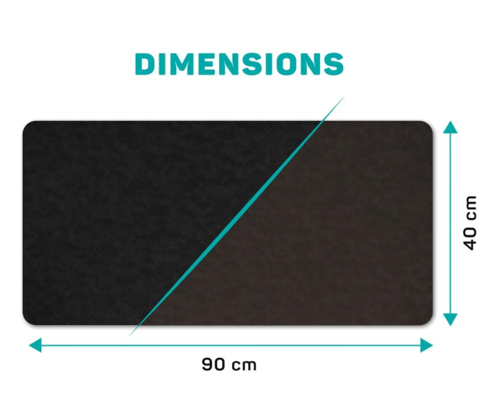 Oboustranná štýlová podložka z umelého semišu je vhodná do každej kancelárie či domácej pracovne. Podložka disponuje jemným antistatickým povrchom príjemným na dotyk, zaisťujúcim jednoduchý a presný pohyb myši. Pri veľkosti plochy 900 × 400 mm vám nikdy nedôjde priestor na pohyb. Veľkou výhodou je obojstranné dvojfarebné využitie. Materiál bol navrhnutý tak, aby odpudzoval vodu a nečistoty.