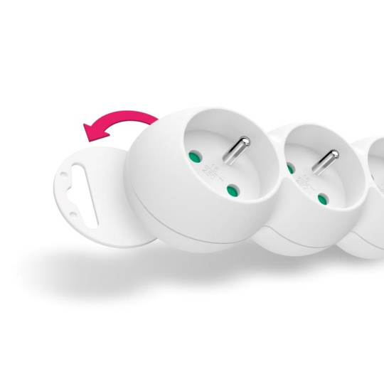 Prodlužovací káblový prívod na 230V je vybavený hlavným sieťovým vypínačom, ktorý pri vypnutí úplne odpojí od prívodu elektrickej energie všetky zapojené spotrebiče naraz. Extra výbavou je detská ochrana všetkých zásuviek – zásuvky sú prístupné iba v prípade zasunutia oboch vidlíc naraz, teda nie je možné zasunúť jednotlivé napr. šroubovák alebo pletacie ihlice. Vďaka pootočeniu zásuviek o 45° je možné používať aj objemnejšie napájacie adaptéry alebo uhlové koncovky. Výsuvné očko v hornej časti zásuvkového modulu umožňuje zavesenie alebo pevné inštalovanie na stenu (s výhodou využijete napr. v dielňach a garážach). Výrobok bol testovaný a certifikovaný v európskom testovacom centre a spĺňa najprísnejšie bezpečnostné požiadavky a najnovšie normy, takže umožňuje zapojenie spotrebičov o celkovom príkone až 2300 W.
