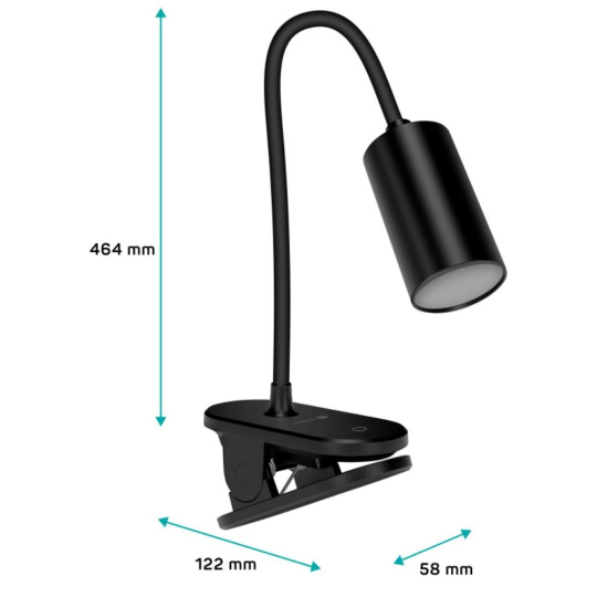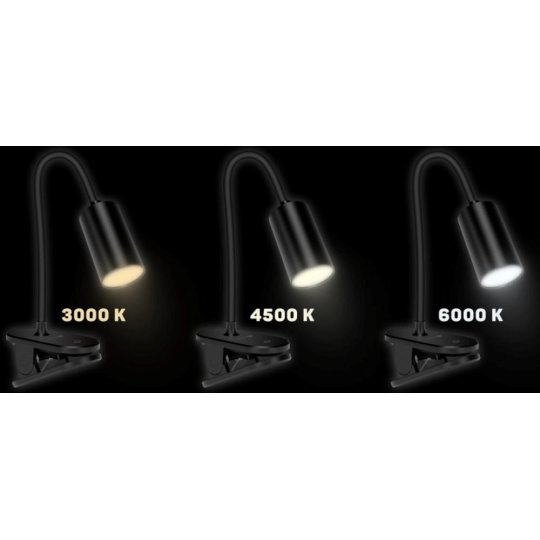 Díky flexibilnímu rameni nastavíte dokonalý úhel pro jakoukoliv práci. Lampička disponuje praktickým dotykovým spínačem, který umožňuje zapnout/vypnout lampu, plynule nastavit úroveň jasu světla nebo nastavit barevnou teplotu světla ve 3 různých úrovních (3000/4500/6500 K). Pomocí klipu můžete lampičku umístit nejen na Váš pracovní stůl, ale například na poličku, noční stolek či rám postele.