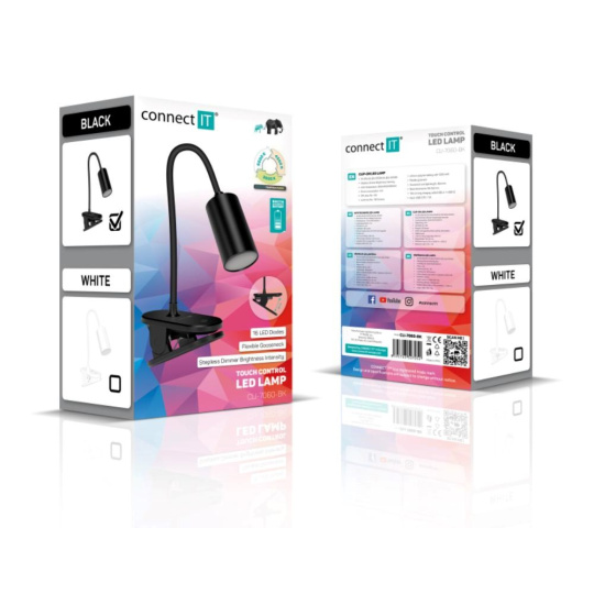 CONNECT IT Stolní LED lampa CLIP 2 s klipem, černá